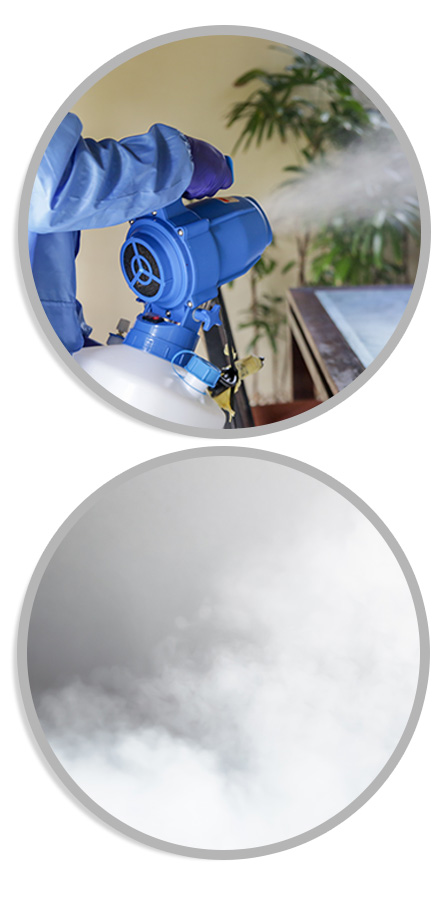 • Fogging systems generate microdroplets that distribute throughout the room and settle on surfaces