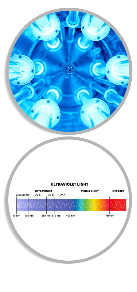 UV-C light refers to a specific band of ultraviolet light (between 200–280 nm), with 254 nm being the most effective wavelength for microbial disinfection. It works by disrupting the DNA or RNA of microorganisms, preventing them from replicating and causing infection. This is a mechanical process, not a chemical reaction.